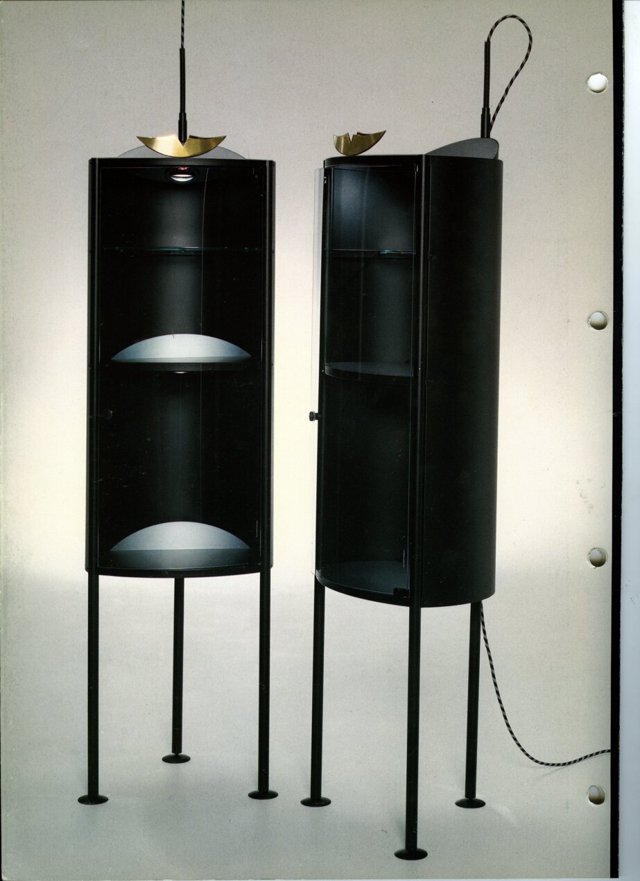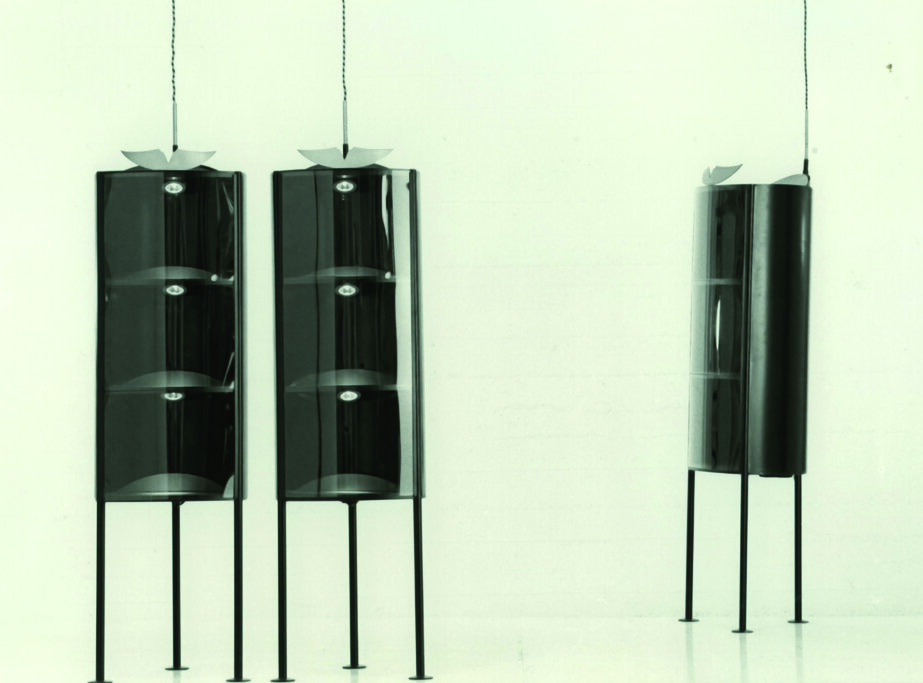 E’ una signorina perbene, sta dritta in piedi e attende oridni. E’ un’invenzione che serve a contenere, illuminare, esporre piccoli oggetti di valori (venale o affettivo). E’ nata per una mostra di gioielli, una di quelle “occasioni” progettuali di contatto con il pubblico che permettono di verificare le sue reazioni a nuove idee per la casa. Oggetto complesso, vagamente autobiografico.