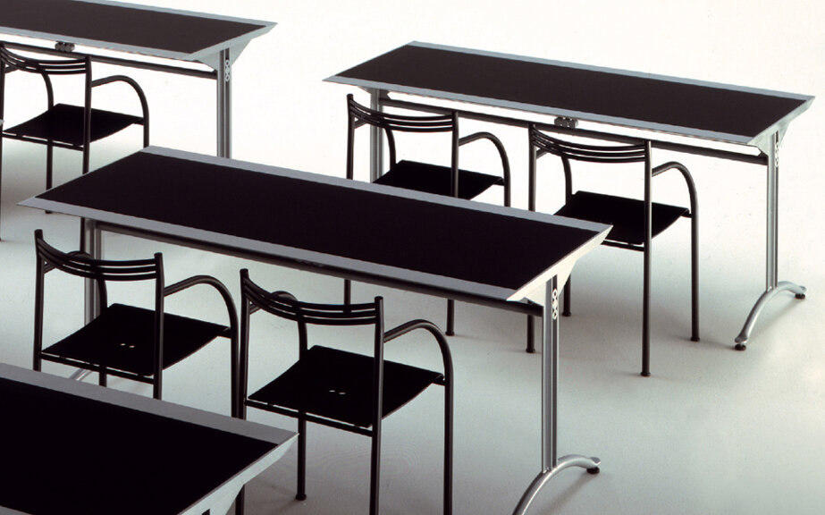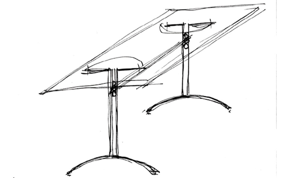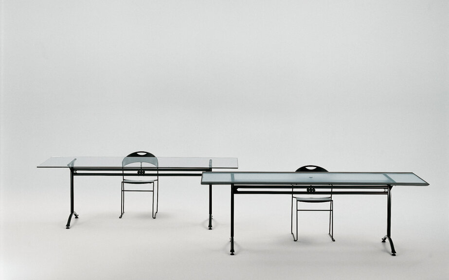 Tavolo o scrittoio. Il nome è omaggio a Carlo Orsi fotografo, amico del progettista, che rivisita qui una antica tipologia e ne ricava un oggetto il cui asciutto fascino si carica di espressività tecnologica, dove l’eleganza del disegno e dei segni grafici che lo marcano, non è altro che la messa in evidenza di precise soluzioni strutturali.