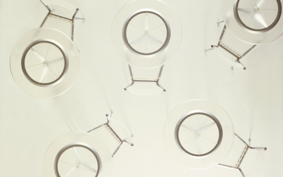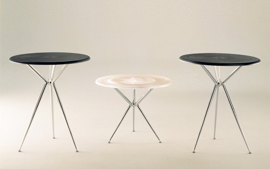 Mimì, la piccola variopinta seduta, richiedeva una presenza maschile al suo fianco. Una rinnovata ispirazione pucciniana ha indotto Enrico Baleri a dar vita a Rodolfo, poeta dalle forme agili, dalle soluzioni impreviste, dagli equilibri instabili. Abile seduttore che qui diventa tavolo versatile, per vari usi, di varie forme per la casa e per la collettività . Un gesto tecnologico che ispira simpatia.