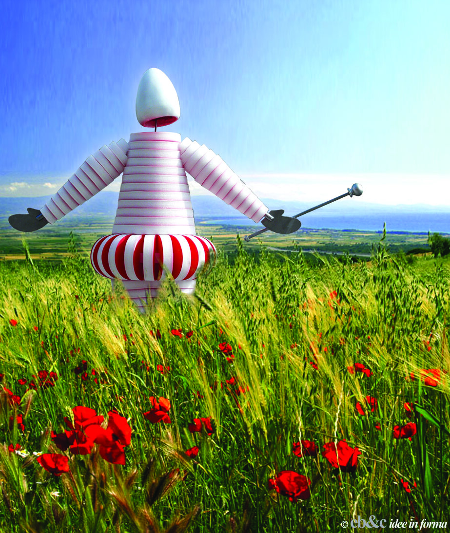 Oskar Schlemmer ha ispirato Enrico Baleri ha realizzare questo spaventapasseri, ludico, cinetico, adatto a tutto fuorchè a spaventare gli uccellini nei campi. Pensato per divertire bambini e colorare spazi di luce e ombre in un gioco di ritmi e di movimento, di suggestione e di riflessioni. Oskar è un uomo positivo che sta dalla parte della natura per contraddirla con i segni della contemporaneità.
