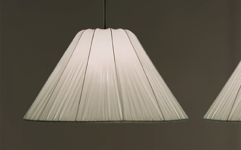 Una lampada per grandi spazi, tema caro a Enrico Baleri e molto ricorrente nelle sue ricerche. Una lampada fatta di niente, una struttura in filo di ferro e una tela, come fosse una calzamaglia da indossare comodamente e da sfilare con altrettanta facilità. Eppure, dietro a questa semplice struttura, si cela una magia fatta di ironia e di luce che con delicato appeal attraversa il tessuto e illumina gli spazi.